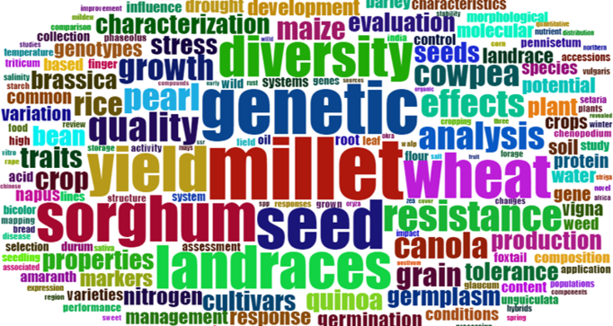 A better appreciation of the complex distinctions which characterize seed improvement in underutilized crops were identified through word cloud. The word cloud shows the most trending words or the most important keywords in seed improvement of underutilized crop related studies.This further broaden the keywords, indicating the crop species that have been frequently researched in the past three decades to be millet, wheat, quinoa, canola, sorghum, landrace wheat cowpea, quinoa, amaranthus spp, winged beans, Dioscorea spp, indigenous vegetables. However, the frequencies of words such as genetic improvement, seed priming, tissue culture, extreme temperatures and mapping are still low in seed improvement of underutilized crop research.