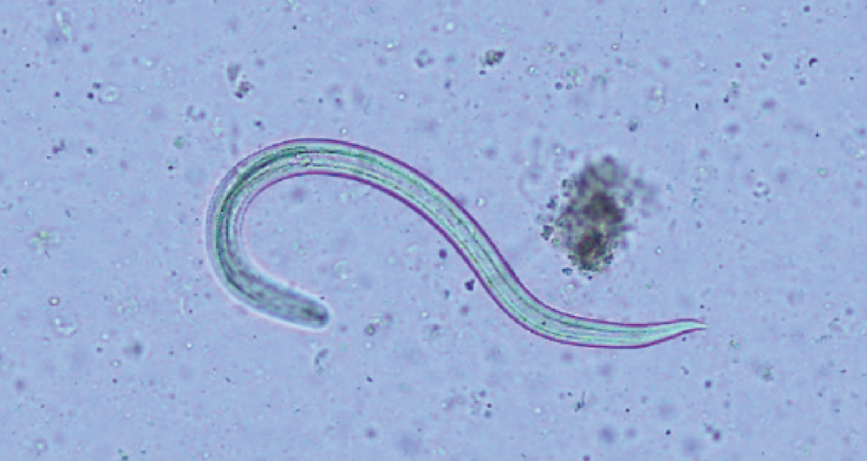 Rat lungworm (Angiostrongylus cantonensis) infective third-stage larva (L3) taken from a bubble pond snail (Bullastra lessoni). Scale bar = 100 µm. Credit: P. Rivory