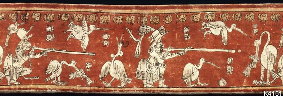 You may be familiar with the blowgun, which appears as a five-minute DIY, life-saving weapon in some popular movies and series (e.g., Apocalypto, McGyver, Love and Bullets). In real life it takes much longer to make such an artifact, nowadays it is also a sport and can be used for remote drug delivery for animals at zoos. The blowgun, a tube from which a projectile (usually a dart or a clay pellet) is propelled by the force of the human breath, has been constructed and used by humans for more than a millennium. Some early examples on the use of blowguns are depicted in archaeological artifacts such as in Moche and Maya vases (example below) and reliefs in the 9th-century Buddhist temple of Borobudur (Indonesia).