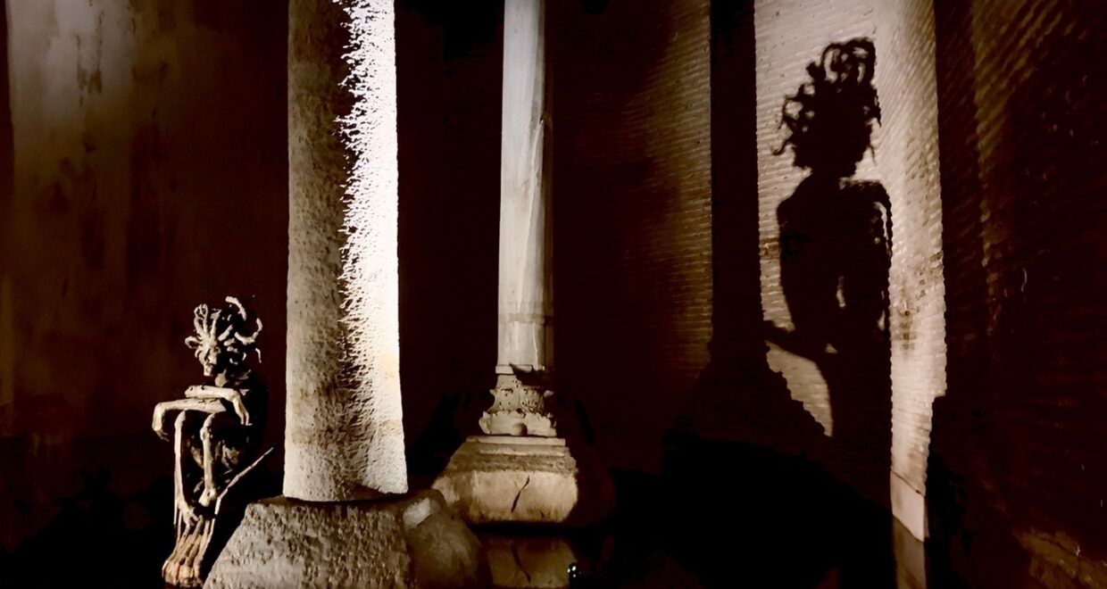 Beneath the bustling streets of Istanbul, beyond the grind of trams and the pull of ancient domes, lies the cistern, ancient and still, where she lives. The Basilica Cistern, built during the Byzantine empire and once a reservoir of water, now holds something even deeper: still time. And in the corner, nearly missed and dimly lit, she waits.